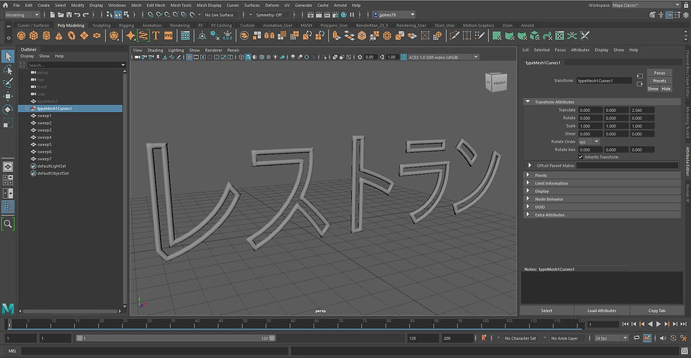 In an attempt to find a more efficient way to model tubes that doesn't involve extruding along all the curve of the letters, I came across a new feature in Maya 2022 which is the Sweep Mesh Tool...